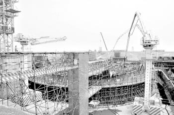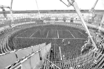 2010年4月25日,海南昌江核電工程正式開工第一灌混凝土正在澆筑。海南昌江核電工程位于海南省昌江縣。該工程采用具有我國自主知識(shí)產(chǎn)權(quán)的CNP600壓水堆核電機(jī)組技術(shù),建設(shè)兩臺(tái)65萬千瓦核電機(jī)組,總投資近190億元,1號(hào)機(jī)組計(jì)劃于2014年底并網(wǎng)發(fā)電。新華社記者