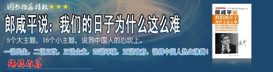 | 比較喜歡看郎教授的書的,通俗易懂,對社會經(jīng)濟(jì)有很強(qiáng)的洞察力,剖析問題也很深刻。只是看過后內(nèi)心總是非常沉重。 |