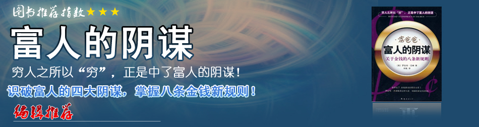 | 自從2008年經(jīng)濟危機以來,經(jīng)濟的未來發(fā)展就成了21世紀(jì)所有中國人關(guān)心的重要問題之一。越來越多的人開始關(guān)注經(jīng)濟,無論是房市還是股市,任何的風(fēng)吹草動都能掀起軒然大波。財稅改革、通貨膨脹和社會財富分配的不公平,正是備受當(dāng)今中國社會關(guān)注的三大敏感話題,越來越多的國人開始關(guān)心財富的奧秘,以及世界經(jīng)濟的走向。為什么財富總是掌握在極少數(shù)富人手里,窮人總是難以翻身?以《窮爸爸富爸爸》聞名于世的“富爸爸”羅伯特·清崎,在他的新書《富人的陰謀》中,為普通百姓解答了這一秘密…[詳細(xì)] |