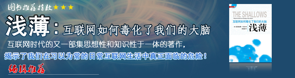 就在卡爾為自己專注閱讀時(shí)間的不斷縮短而哀嘆的同時(shí),他也十分謹(jǐn)慎地指出了互聯(lián)網(wǎng)的重要推動作用。我們可能被迫進(jìn)入智力上的淺薄地帶,不過這些淺薄地帶會跟海洋一樣寬廣。 |