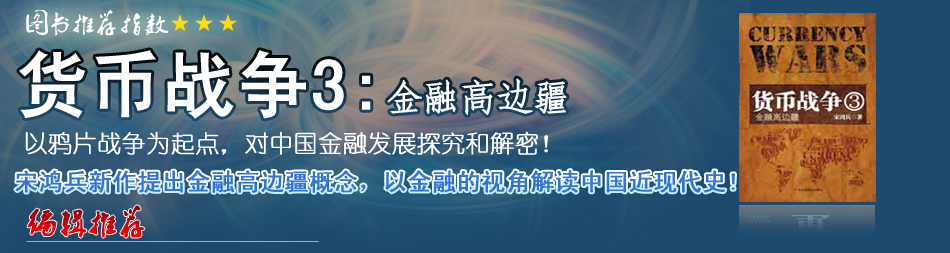 如果用一句話概括宋鴻兵的新作《貨幣戰(zhàn)爭(zhēng)3·金融高邊疆》,那就是:以金融的視角解讀中國(guó)近現(xiàn)代史。在前兩部《貨幣戰(zhàn)爭(zhēng)》分別解讀了美國(guó)和歐洲的金融發(fā)展史之后,宋鴻兵終于把目光投向了中國(guó),以鴉片戰(zhàn)爭(zhēng)為起點(diǎn),開始了對(duì)中國(guó)金融發(fā)展的探究和解密。 近日,宋鴻兵在新書發(fā)布會(huì)上表示,隨國(guó)際金融環(huán)境的變化和人民幣國(guó)際化的推進(jìn),金融已經(jīng)成為中國(guó)必須保衛(wèi)的“第四維邊疆”。 “在未來(lái)國(guó)際貨幣戰(zhàn)爭(zhēng)陰云密布的時(shí)代,金融高邊疆的重要性將日趨凸顯。”宋鴻兵認(rèn)為,貨幣發(fā)行是人類社會(huì)最重要的權(quán)利之一。構(gòu)成和行使貨幣發(fā)行權(quán),需要一整套體系和架構(gòu)支撐,他將這一體系稱之為“金融高邊疆”…[詳細(xì)] |