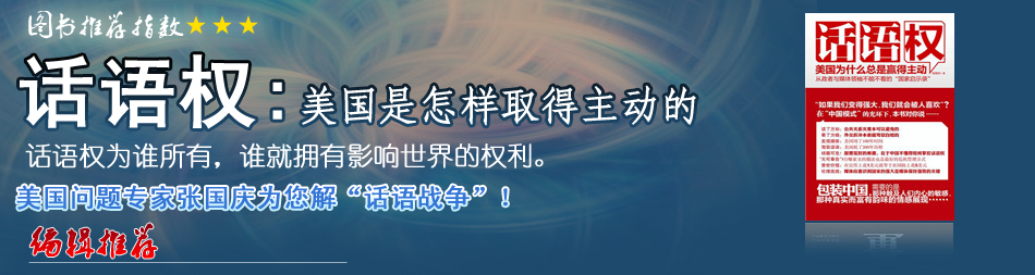 | 收到一本新書,書名很醒目——《話語權(quán)》,作者張國慶是中國社科院美國研究所的國際問題專家!对捳Z權(quán)》這本書主要內(nèi)容說的是美國社會如何利用“話語權(quán)”來影響中國、誤導(dǎo)中國、鉗制中國、戰(zhàn)勝中國。很寬的書腰上赫然寫著這樣的文字:“在宣傳上花1美元就等于在國防上花5美元”。因此,“話語權(quán)”等于是一場長期而復(fù)雜的“宣傳戰(zhàn)”。張國慶先生的這本書我還沒來得及看完,但是,他很清晰地提出了“話語權(quán)”這個非常重要的問題,他讓我們意識到,中國與美國之間的這場“話語權(quán)”較量,至少在目前看來,中國一直處于下風(fēng),近幾十年來,中國在這個問題上,始終不是美國的對手。有這樣一個意識,我覺得是一個巨大的進步…[詳細] |