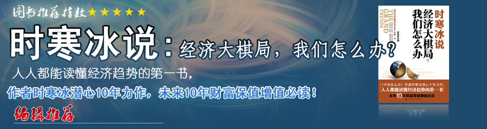 | 整個世界是一盤大棋局,中國也是這個棋盤中的一部分。只有明白大棋局的走向,才能真正洞悉這個世界的變化,明白中國趨勢的演變。因此,我們需要對國際大棋局一點點地進行剖析——當(dāng)走進去,會發(fā)現(xiàn)一個完全不同的世界,站在其內(nèi)看中國的大趨勢,看中國的樓市、股市,看中國的未來,一切都那么清楚明了。作者時寒冰獨創(chuàng)“利益分析法”,對經(jīng)濟趨勢有著驚人準(zhǔn)確的判斷。本書再次作出系統(tǒng)分析和預(yù)言,解讀我們應(yīng)該怎么辦。 |