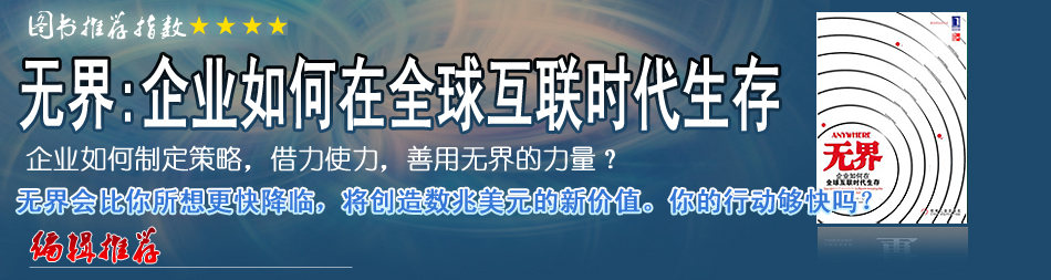 | 書中大多說的是企業(yè)該怎么在無界中生存,而我看到的卻是怎么在這個互聯(lián)網(wǎng)中尋找我們自己的位置和商機。 |
