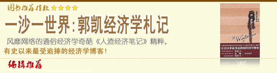 這是筆者第三遍看《一沙一世界:郭凱經(jīng)濟(jì)學(xué)札記》了,這本書算是郭凱博文的合集,他的博客寫了五年,我看了五年。我對經(jīng)濟(jì)學(xué)的理解也是隨著他的博客一天天成長的。他關(guān)注的問題總是很宏觀,大到世界,卻從小事的觀察入手,像是沙粒的縫隙中有無窮的奧秘,大概也是“一沙一世界”的用意吧…[詳細(xì)]