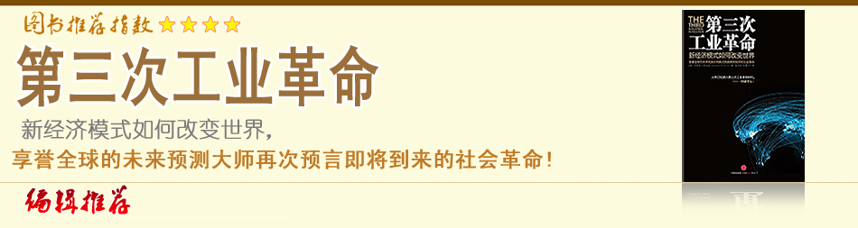 里夫金把21世紀兩種不同的技術——互聯網和可再生能源——聯結在一起,為我們的未來描繪了一個新的、充滿活力的經濟前景。期望現在的經濟重獲新生、創(chuàng)造大量就業(yè)機會和為子孫后代創(chuàng)造可持續(xù)發(fā)展的未來,第三次工業(yè)革命提供了一個絕對必要的路線圖。 |