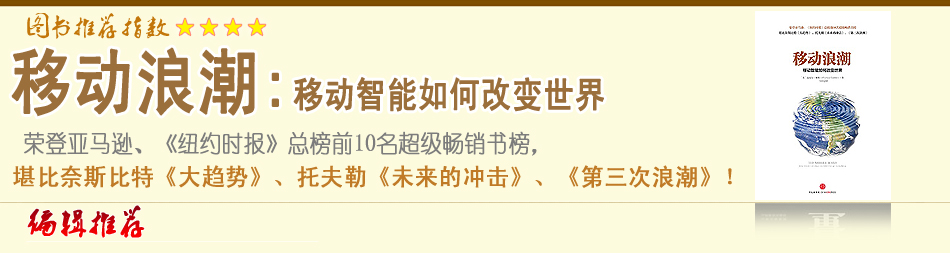 | 正讀《移動浪潮》,巨大享受但也震撼!移動計算技術(shù)將會影響我們這代人最具顛覆性的技術(shù),而它所推動的革命正在飛速發(fā)展。信息革命在移動智能的推動下,將會在短短的幾十年里,改變我們的世界。 |