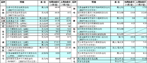 當周美元匯價雖苦苦支撐但最終無力反彈,造成國際市場金屬期貨價格普遍攀升,其中鉛期貨價格達到歷史新高。 當周五(6月1日),倫敦金屬市場鉛期貨價格一度達到每噸2380美元,創(chuàng)下歷史新高,與此同時,其他金屬價格也扶搖直上。全球鉛儲備緊張是當周鉛價大幅上揚的主要原因!笆袌龉⿷o張的情況還在加劇,來自電池工業(yè)的需求不斷擴大,同時中國鉛出口政策又發(fā)生了變化,所有這些因素都都將進一步推升鉛價。”巴克萊證券公司分析師蘇基·庫伯表示。 黃金價格當周繼續(xù)上揚,蘇基·庫伯指出,美元匯價走弱增大了投資者持有其他貨幣的成本,因此市場需求轉向了黃金這樣的以美元計價的商品期貨。而在黃金價格的帶動下,白銀價格當周突破了每盎司13美元的關口。 由于交易者對石油供應擔心緩解和交易者獲利回吐壓力影響,5月29日國際市場原油期貨價格一度出現(xiàn)大幅下跌。5月31日美國能源部公布的油品庫存報告顯示,上周美國汽油庫存連續(xù)第四周增加,市場對美國夏季用油高峰汽油供應的擔心有所緩解,受此影響,當周五國際油價溫和上漲。據(jù)悉,由于美國一些煉油廠進行設備維護等原因,美國汽油庫存近期一直處于歷史較低水平,雖然當周主要石油公司相繼宣布其煉油廠問題已經(jīng)解決,但分析人士指出,汽油庫存因此造成的巨大虧空不可能馬上填平。 受強勁的投機性賣盤打壓,當周可可期貨收跌,分析人士指出,可可主要產地越南地區(qū)不容樂觀的收成情況是可可價格上揚的主要因素。而谷物主要產地的炎熱天氣將致減產的消息有力地推升了當周谷物期貨價格。分析人士指出,烏克蘭和俄羅斯等地的干旱天氣給對小麥期貨價格構成有力支撐,從6月3日開始的一周中,干燥而炎熱的天氣將侵襲美國農作物豐富的中西部地區(qū),屆時市場也會有所反應。