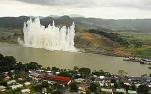 | 3日,在巴拿馬城附近的帕拉伊索地區(qū),巴拿馬運河擴建中的首個工程項目成功進行了爆破,它標志著運河擴建工程正式啟動。新華社發(fā) | 本報巴拿馬城電