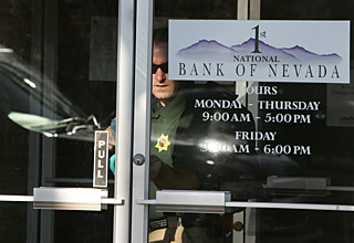 | 25日,在美國內(nèi)華達州首府卡森城的內(nèi)華達州第一國民銀行,一名調(diào)查人員鎖上大門。新華社/美聯(lián) | 對美國銀行業(yè)來說,這個夏天格外“冷”。7月初,加利福尼亞州印地麥克(IndyMac)銀行因財政困難被聯(lián)邦政府接管,成為美國歷史上第三大破產(chǎn)銀行。25日,又有兩家小銀行——內(nèi)華達州的第一國民銀行和加州的第一傳統(tǒng)銀行宣布破產(chǎn)。至此,今年以來美國已有7家銀行破產(chǎn)。