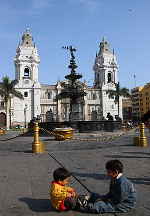 15日,兩名兒童在秘魯首都利馬老城的馬約爾廣場(chǎng)上玩耍。始建于1535年的利馬是秘魯?shù)恼、?jīng)濟(jì)和文化中心,集中了全國(guó)1/4以上的人口,城區(qū)分為新城和老城兩部分。其中位于西北部的老城保留了大量殖民地時(shí)期的建筑,已被列入“世界文化遺產(chǎn)”。11月22日至23日,亞太經(jīng)合組織(APEC)第16次領(lǐng)導(dǎo)人非正式會(huì)議將在秘魯首都利馬舉行。新華社記者