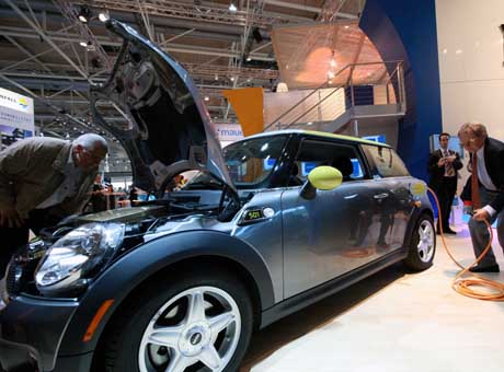 20日,在德國漢諾威工業(yè)展上,一輛電動(dòng)環(huán)保汽車吸引了眾多參觀者。太陽能、風(fēng)能等環(huán)保能源在本屆漢諾威工業(yè)展上頗受青睞。