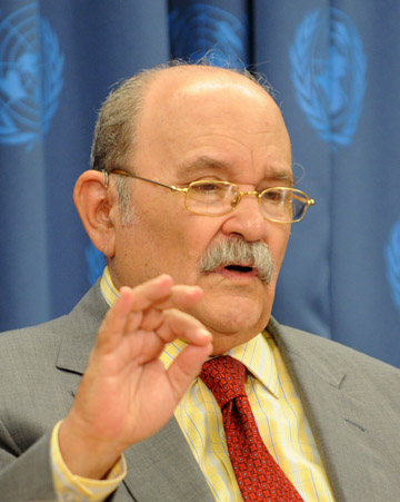 23日,第63屆聯(lián)大主席布羅克曼在美國(guó)紐約聯(lián)合國(guó)總部舉行的記者招待會(huì)上講話。新華社記者 申宏