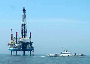 河北邊防海警在冀東油田海域巡邏。 本報(bào)記者 楊世堯