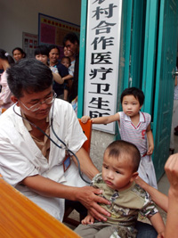 廣西河池市用新農(nóng)合解決移民看病難問題。這是到村級衛(wèi)生所值班的醫(yī)生在移民安置區(qū)給一名兒童看病。 新華社記者:張愛林 攝