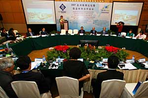 | 11月9日,2007歐亞經(jīng)濟(jì)論壇代表在教育合作會議上發(fā)言。當(dāng)日,2007歐亞經(jīng)濟(jì)論壇在西安舉行能源、旅游、教育、金融領(lǐng)域合作會議和各國投資環(huán)境推介會議,架起歐亞各國相互合作、共同發(fā)展的橋梁。新華社發(fā)(侯智