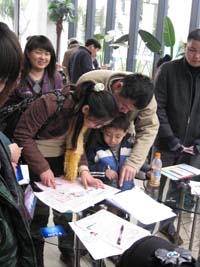 廣州首個(gè)限價(jià)房項(xiàng)目——保利西子灣2月16日正式接受簽約。簽約的市民臉上都露出了欣喜的笑容。圖為一家三口正在仔細(xì)地閱讀購房合同。 新華社記者:陳先鋒