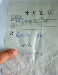 4月22日,執(zhí)法人員展示一份銷(xiāo)售“易瑞沙”藥品的處方箋,上面顯示一瓶銷(xiāo)售2500元。新華社記者:鞏志宏
