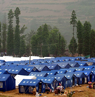| 連日來,重災(zāi)區(qū)北川縣2000多名返鄉(xiāng)及受堰塞湖威脅撤離的群眾在陳家壩安置點(diǎn)得到妥善安置。新華社記者 岳月偉
