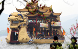 西湖餐飲船船型設(shè)計(jì)提出四種方案供選擇:方案一,借鑒中國古代官船特色,上層建筑四角昂翹、高低錯(cuò)落,以歷史古都特有“紅”、“黃”為主色調(diào);方案二,采納傳統(tǒng)江南民居中白墻黛瓦風(fēng)貌;方案三,突破西湖上畫舫船的傳統(tǒng)造型,突出簡潔流暢、富有時(shí)代感的現(xiàn)代簡約特色;方案四,借鑒杭州城標(biāo)圖案設(shè)計(jì)船型。目前,管委會(huì)尚未透露最終將選擇哪種方案作為餐飲船造型定稿。 按照規(guī)劃,餐飲船經(jīng)營將走精致、高端路線。每艘長約20米、高約6米,主船體分為兩層,一層船艙兩側(cè)采用大面積玻璃圍合,設(shè)置駕駛室、衛(wèi)生間、廚房和餐廳,以用餐為主;二層船艙設(shè)計(jì)為通透式亭屋結(jié)構(gòu)和露天平臺(tái),設(shè)置餐廳和觀景臺(tái),供客人用餐、品茶、觀景、觀看文藝表演。 “杭州西湖一直以山水秀美、歷史悠久享譽(yù)世界,”市民王小姐說:“我覺得在西湖上增加這些各具風(fēng)格的餐飲船能錦上添花! 早在1986年,樓外樓飯店就推出一艘餐飲船,?吭跇峭鈽情T前碼頭。樓外樓副總經(jīng)理蔣紅介紹,飯店去年投資近600萬元,又推出一艘“樓外樓號(hào)”畫舫,船體金碧輝煌,可供50人游湖、20人用餐!皹峭鈽翘(hào)”畫舫的游湖費(fèi)用是每小時(shí)2000元,用餐費(fèi)每桌定價(jià)約在萬元以上。
