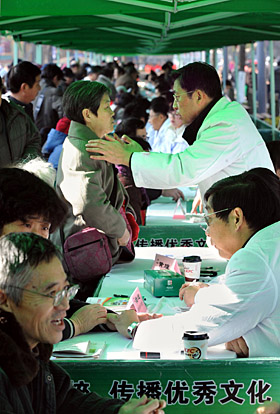 7日,“中醫(yī)重要中國(guó)行”江蘇站啟動(dòng)儀式現(xiàn)場(chǎng)舉辦的宣傳、義診等活動(dòng)吸引了數(shù)千南京市民。新華社記者 孫參
