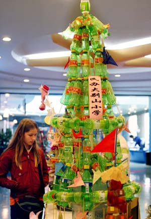 創(chuàng)意環(huán)保圣誕樹(shù)。新華社記者:劉穎 攝 |