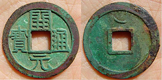 唐代開元通寶貨幣,在錢幣發(fā)展史上占有重要地位。唐初沿用隋五銖,輕小淆雜。唐高祖武德四年(公元621年),為整治混亂的幣制,廢隋錢,效仿西漢五銖的嚴(yán)格規(guī)范,開鑄“開元通寶”,取代社會上遺存的五銖。 除銅質(zhì)開元通寶(本圖)外,唐初還鑄造過金、銀質(zhì)開元通寶。這兩種貴重金屬幣僅限皇家賞賜,供顯貴玩賞,并不投入流通。 | 漁陽鼙鼓動地來