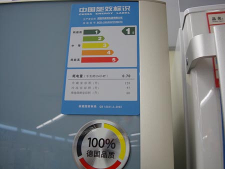 記者日前在北京大中電器牛街店走訪時看到,電冰箱、洗衣機、空調(diào)等家電產(chǎn)品都在醒目位置貼上了能效標識。 正在選購冰箱的王小姐告訴記者:“我們每天都會用到冰箱等家電,如果耗電量很大,將會是一項較大的開支。所以我在選購時會首先考慮它的耗電量,看是不是達到了高效節(jié)能的水平! 記者在采訪中發(fā)現(xiàn),像王小姐這樣的消費者還有很多,他們在購買電器時很注重觀看產(chǎn)品上的能效標識是不是達到一級能效水平,不過對于能效標識的具體內(nèi)容和節(jié)能計算方法卻并不清楚。 據(jù)了解,家電產(chǎn)品的能效標識共分為5級:1級能效最高,目前市場上產(chǎn)品有少數(shù)能達到;2級是節(jié)能評價值,產(chǎn)品能效達到2級或以上就可以向認證機構(gòu)申請節(jié)能產(chǎn)品;5級是能效限定值,是市場準入的門檻,低于該值的產(chǎn)品將不能在市場上銷售。 伊萊克斯專柜的售貨員表示,現(xiàn)在能效標識已成為消費者選購的一個重要指標,但它的具體計算比較復雜。以冰箱為例,它還要考慮到冷藏量的大小以及開門的次數(shù)等等。