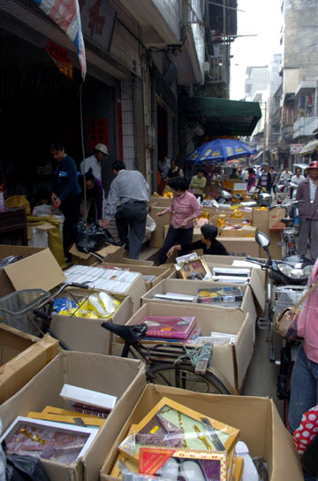 ?谑姓駯|街道路兩旁布滿了兜售祭祀用品的商店。小到紙錢、元寶、金條,大到汽車、飛機、別墅,品種繁多。掃墓祭祀時這些紙制品不僅污染環(huán)境,還極易形成山火隱患。本報記者:郭程