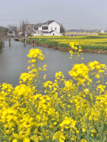 蘇州水鄉(xiāng)古鎮(zhèn)同里的科技農(nóng)業(yè)示范園內(nèi),近萬畝油菜花盛開。本報記者:陳琪