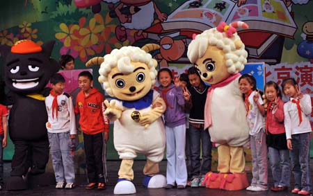 以風(fēng)靡全國(guó)的動(dòng)畫(huà)片《喜羊羊與灰太狼》為基礎(chǔ)創(chuàng)作的動(dòng)漫人偶劇《喜羊羊與灰太狼之記憶大盜》日前在中國(guó)木偶劇院演出12場(chǎng),深受觀眾歡迎。本報(bào)記者:孔卉