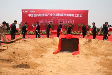 5月29日,位于江蘇泰州的中國醫(yī)藥城疫苗產(chǎn)業(yè)化基地項目奠基。當日,國家級醫(yī)藥高新技術(shù)產(chǎn)業(yè)園區(qū)——中國醫(yī)藥城在江蘇泰州舉行揭牌儀式。中國醫(yī)藥城總體規(guī)劃面積25平方公里,由科研開發(fā)區(qū)、生產(chǎn)制造區(qū)、會展交易區(qū)、康健醫(yī)療區(qū)、綜合配套區(qū)五大功能區(qū)組成。它的目標是形成在疫苗、生物制藥、化學藥新型制劑、高端醫(yī)療器械、中成藥提取等5個方面具有國際競爭力的特色產(chǎn)業(yè)基地。目前,區(qū)內(nèi)已聚集了國內(nèi)外知名的醫(yī)藥研發(fā)機構(gòu)40多家,落戶醫(yī)藥生產(chǎn)、服務型企業(yè)100多家。 |