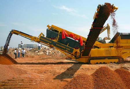 移動(dòng)遙控式建筑垃圾破碎篩分設(shè)備亮相許昌