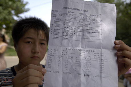 8月11日,鳳翔縣長青鎮(zhèn)高咀頭村14歲小朋友馬佳星出示的報(bào)告單顯示,他的血鉛檢測值是316ug/l(毫克/升),遠(yuǎn)遠(yuǎn)超過了100ug/l以內(nèi)的正常標(biāo)準(zhǔn)。本報(bào)記者:陳鋼