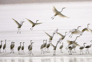 張掖市高臺(tái)縣境內(nèi)的候鳥。本報(bào)記者韓傳 號(hào) 攝 |