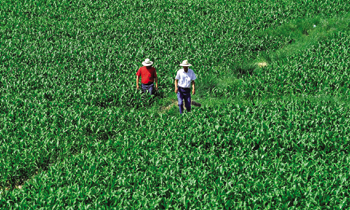技術(shù)人員從張掖市甘州區(qū)成片的制種玉米中走過。本報(bào)記者 韓傳號(hào)