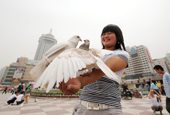 蘭州廣場鴿。本報記者