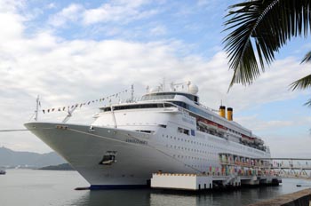 2009中國郵輪產(chǎn)業(yè)發(fā)展大會暨首屆國際郵輪博覽會11月在三亞舉辦。圖為停靠在三亞鳳凰島國際郵輪碼頭的歌詩達(dá)“經(jīng)典號”郵輪。新華社記者 鄭瑋娜