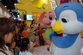 杭州的兩個卡通形象吸引了大批的參觀者。杭州動漫產(chǎn)業(yè)近年來取得跨越式飛速發(fā)展,經(jīng)濟利潤增長顯著,僅今年上半年,動漫游戲衍生產(chǎn)品收入達1620萬元,相當于去年同期的近兩倍。目前,杭州已擁有5個國家級動漫基地,動漫企業(yè)135家,從業(yè)人員1萬余人,動畫片年生產(chǎn)總量連續(xù)多年位居全國前列。