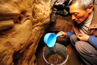 2月24日,黔西南布依族苗族自治州興仁縣豐巖村村民在山洞中取水。新華社記者 劉續(xù)