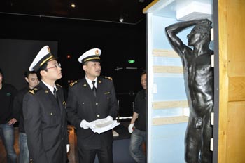 與“金色少女”一樣,許多國家的國寶級文物都遠渡重洋,聚集上海世博會。其中法國奧賽博物館價值超過4億歐元的七件傳世珍品,一亮相就成了世博會的最大熱門,每天慕名來參觀的游客在烈日下排成長龍,蜿蜒不絕。七件展品包括米勒的《晚鐘》、馬勒的《陽臺》、梵高的《阿爾的舞廳》、塞尚的《咖啡壺邊的婦女》、博納爾的《化妝間》、高更的《餐點》以及羅丹的雕塑作品《青銅時代》,都是稀世的藝術珍品。 “太難得了,(這個是)必須的,排再長的隊也要看!”來自東北的李先生帶著一家人排在長長的隊伍中,一邊擦汗一邊樂呵呵地說。 因為要開箱驗放,上海海關關員湯新成為世博會第一時間看到七件法國“寶貝”的“幸運兒”之一!澳苓@么近距離接觸到價值連城的藝術珍品,真的很幸運,也很自豪。當然,心里也有一點緊張,畢竟,這些展品價值超過前期園區(qū)所有展品的價值總和!睖抡f。為保護這些稀世珍品,海關驗放工作不再單獨進行,而是穿插在整個布展過程中,“整個開箱過程都是由專業(yè)物流人員在文物專家的指導下進行,對溫度、濕度要求很高。專家們對展臺進行反復測量,對掛畫的順序也非常講究,”因此,這次驗放格外漫長,差不多從上午10點到下午五點左右才結束。“一個上午才放好一個雕塑”。下午三點多,工作人員打開第一個存放畫作的木箱,小心翼翼地撥開五層保護墊,梵高的名作《阿爾的舞廳》露出全貌,驚艷全場。 “現(xiàn)場非常安靜,博物館的專家透過放大鏡,對畫作與樣本圖片進行比對,檢查畫作狀態(tài),并確認真?zhèn)!北M管帶著手套,湯新并沒有像過去驗放貨物那樣親手接觸到展品。“雖然不是零距離,但能這么近距離經(jīng)歷整個過程,實在太難忘了!