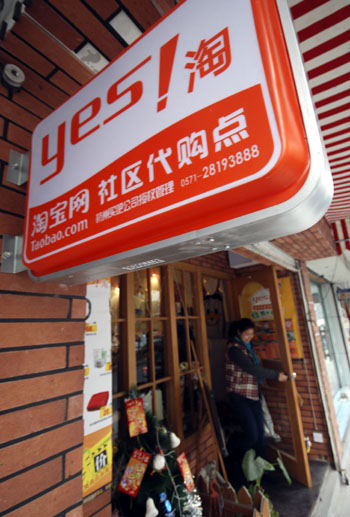 今年初,淘寶網(wǎng)宣布進(jìn)軍線下零售,授權(quán)副食店、超市、連鎖店等社區(qū)店成為淘寶網(wǎng)指定代購店,為不會(huì)上網(wǎng)的消費(fèi)者提供服務(wù)到家的網(wǎng)購、充值繳費(fèi)等電子商務(wù)服務(wù)。新華社發(fā)(黃宗治 攝) |