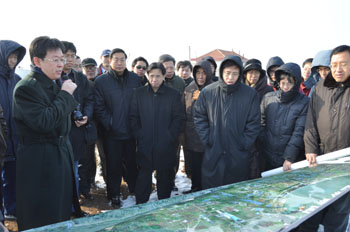 2010年1月,渤海海峽跨海通道課題組成員和國(guó)家發(fā)改委、交通運(yùn)輸部、鐵道部等國(guó)家部委研究人員共同到蓬萊考察、調(diào)研工程線路、登陸地點(diǎn)。左二為蓬萊市市長(zhǎng)張代令,左七為渤海海峽跨海通道課題組副組長(zhǎng)、魯東大學(xué)副校長(zhǎng)、環(huán)渤海發(fā)展研究中心主任柳新華教授。資料照片 |