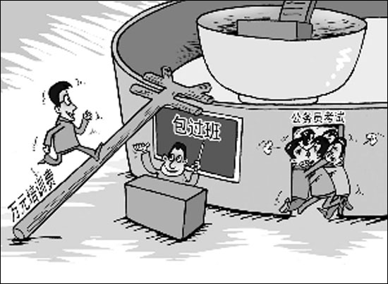 面對各地公務(wù)員報(bào)考的盛況,一些培訓(xùn)機(jī)構(gòu)趁勢辦起了所謂的“包過班”,每人報(bào)名費(fèi)10000元,如事后還考不上,將退回5000元。有已連續(xù)兩年參加公務(wù)員考試的人認(rèn)為這種培訓(xùn)不過是噱頭而已,專家更大潑冷水。