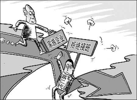 最令20多年來(lái)創(chuàng)業(yè)一代民企老板揪心的事情,莫過(guò)于 家族企業(yè)“傳位”難。調(diào)查顯示,有60%的“富二代”不愿接班。商界人士則認(rèn)為,就現(xiàn)代企業(yè)的管理而言,經(jīng)理人模式將成大勢(shì)。關(guān)鍵取決于民企自身的態(tài)度和理念。
