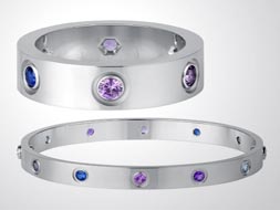 愛的豐富與多彩,人人傾心迷醉。 彩色寶石系列全情表現(xiàn)愛之真彩,此系列選用藍色系和紫色系的優(yōu)質寶石精巧嵌于手鐲和戒指之上,高貴典雅的寶石時時閃爍真摯絢麗的光芒。魅惑多彩的寶石仿佛悅動出人生中的五彩畫面,輕盈地點綴于澄澈的白金之間;這一系列珠寶宛如閃耀在腕間和指間的精靈,時刻洋溢著愛情的幸福與甜蜜,并恒久映射出對愛情的享受與珍惜。 把愛環(huán)環(huán)緊扣,將愛化繁為簡,讓愛豐裕多彩?ǖ貋営萌 系列珠寶與您一道將愛之意濃情分灑,愛之路耀目續(xù)寫。
