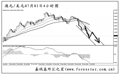 ▲英鎊兌美元沿4小時圖的上升通道一路上行,此前日線圖形成的旗形中繼已宣告失敗,但MACD尚處于多頭動能充盈階段。短線匯價下落回調(diào),正在考驗通道下沿的支撐力度。英鎊即使小幅跌破通道,也難以徹底改變良好的漲勢,后市仍以看漲為主。