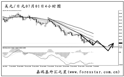 ▲美元兌日元沿下降趨勢線下挫,圖中均線系統(tǒng)空頭排列。89.00的支撐被跌破后,美元兌日元即將考驗88.10的支撐,繼續(xù)看破后方可打開進(jìn)一步的下跌空間。短線匯價有上調(diào)的欲望,但即使升破趨勢線,也很難改變整體的跌勢,操作上應(yīng)繼續(xù)尋找做空的機(jī)會。