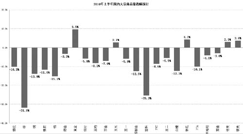 6月份,國內(nèi)大宗商品市場受國內(nèi)信貸緊縮、投資增速下降以及外圍經(jīng)濟(jì)動(dòng)蕩等因素影響,整體呈現(xiàn)震蕩下跌格局。后期看來,這些因素還將在一定時(shí)間內(nèi)主導(dǎo)商品走勢,預(yù)計(jì)7月份大宗商品仍難以擺脫弱勢震蕩,但農(nóng)產(chǎn)品由于進(jìn)入生長關(guān)鍵期,或因天氣因素出現(xiàn)反彈。