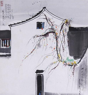 吳冠中曾言:“一百個(gè)齊白石抵不上一個(gè)魯迅!笨梢娝麑(duì)魯迅先生推崇備至,魯迅桀驁不馴的性格以及“躲進(jìn)小樓成一統(tǒng)”的“壕塹戰(zhàn)”的思想,也深深觸動(dòng)著吳冠中的內(nèi)心。此次付拍的《魯迅詩意圖》雖為吳氏展現(xiàn)江南白墻黛瓦的繪畫題材,卻因?yàn)樽笊辖堑念}詩而別有一番韻味!岸氵M(jìn)小樓成一統(tǒng),管他春夏與秋冬”。